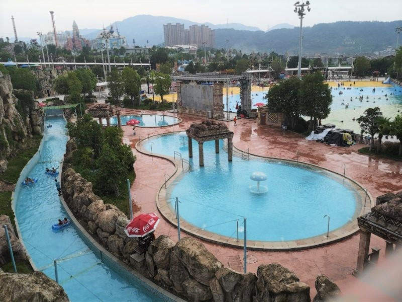 飞舟冲浪,非常值得一试。乘坐着船沿着轨道,一路哐哐哐向上行驶,速度缓慢,船上的我还担心会不会后溜呢是我多虑了,船顺利地爬坡到了隧道内,黑暗而又一些光亮,让人有些惊悚,光越来越亮,看到头了瞬间来一个大陡坡直接顺势而下,一两秒之间之间就已经到达下来,心悬得高高地瞬间就放下了,迎面而来的水花喷得我们一个措手不及,算是一个很惊喜的体验而不是惊险。不要错过哦~(购买一次性雨衣要10元哦)